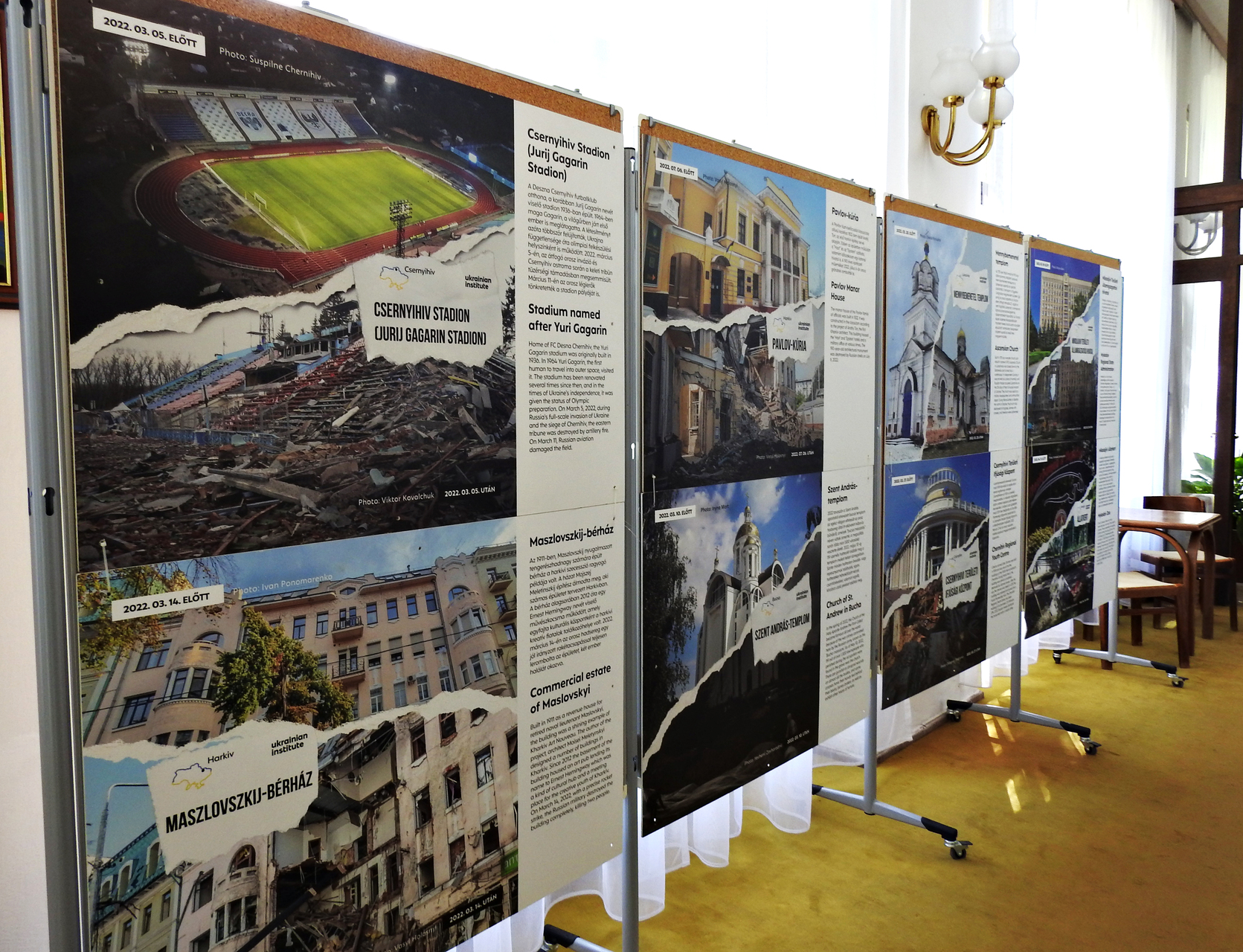 Az orosz–ukrán háborúban megsemmisült vagy megrongálódott épületeket mutat be az a kiállítás, amely április 20-án nyílt meg a Mogyoróssy János Városi Könyvtár folyosóján és lépcsőházi galériájában, Képeslapok Ukrajnából címmel.