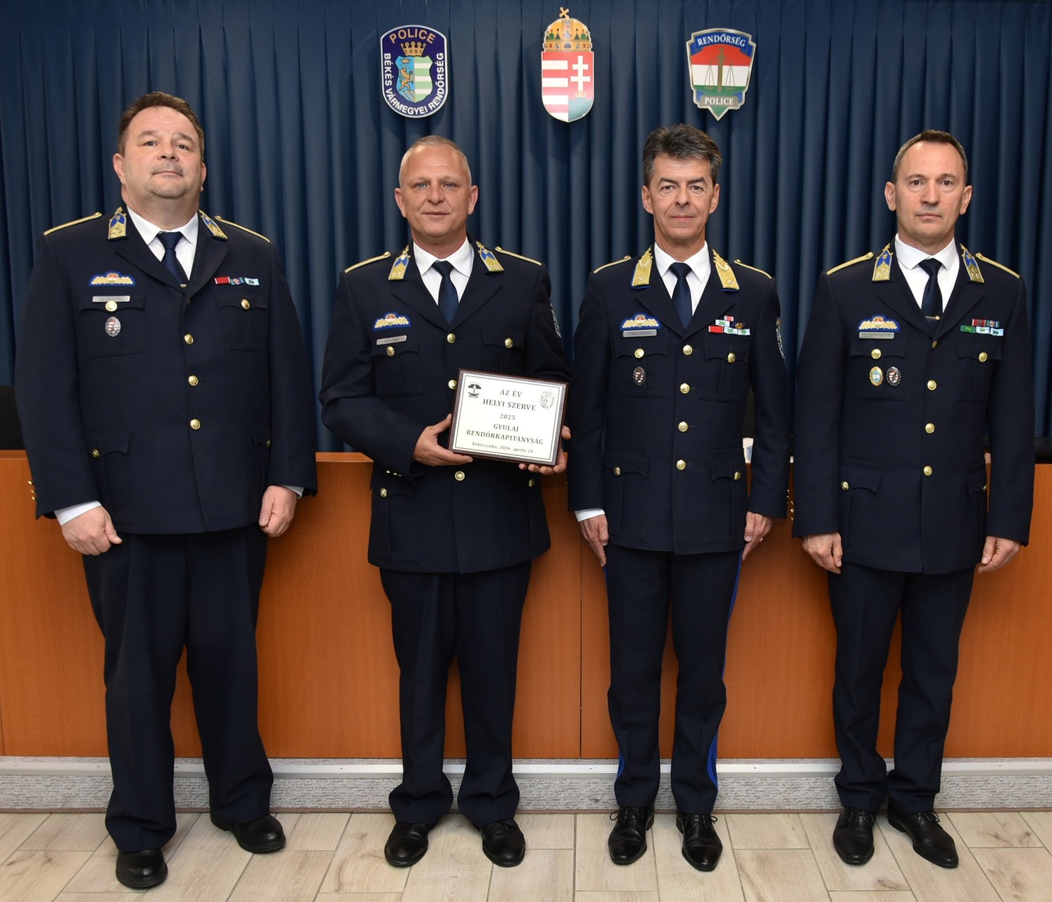 A magyar rendőrség napja alkalmából Vörös Ferenc Békés vármegyei rendőrfőkapitány gratulált a belügyminiszteri és országos rendőrfőkapitányi elismerésben részesülteknek, valamint további elismeréseket adott át.