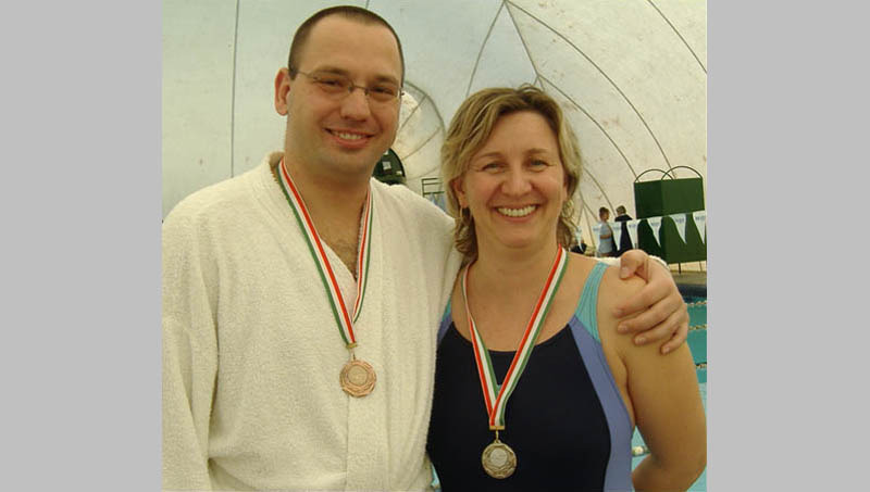 A hagyományoknak megfelelően idén is Szentes adott otthont a Országos Pedagógus Úszóversenynek, melyet az elmúlt hét végén rendeztek meg. A Gyuláról delegált csapat tagjai, azaz Bagi Csilla és Fodor György (képünkön), jól kvalifikált, felkészült, mondhatni visszajáró, rutinos versenyzők, „humános” pedagógusok. A mérleg nyelve ezúttal is szépen kilengett számukra, hiszen a serpenyőbe három arany került, ebből kettőt Fodor György szerzett 50 m háton és 4×25 m-es váltó tagjaként, egyet pedig Bagi Csilla 50 m gyorson. Egyetlen ezüstérmüket Bagi szerezte meg 50 m pillangón, Fodor pedig 50 m mellen, 50 m pillangón és 100 m vegyesen csapott harmadikként a célba. A szervezés idén is remek volt, a hangulatot – az alapvetően ismerős és dicsőséges környezet mellett – az emelte, hogy a versenyzők újabb oktatókkal ismerkedhettek meg az ország távoli pontjairól, és nemcsak pályákat, hanem eszmét is cserélhettek velük. Bagi Csilla–Fodor György-duó immár hetedik éve állt ki Gyuláért és a pedagógusokért. Jövőre szeretnének újabb címermondattal nekiindulni: Többen, többet, tovább!
