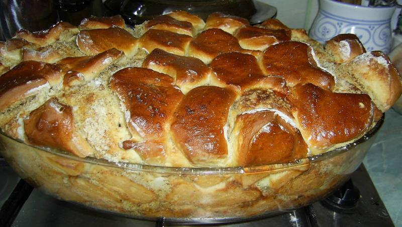 1 dl langyos tejben az élesztőt felfuttatjuk. Ezután összedolgozzuk a liszttel, a tojás sárgával, a sóval és annyi langyos tejjel, hogy lágy tésztát kapjunk. Ezután beledagasztjuk a margarint, és lisztezett tálba tesszük a cipóvá formált tésztát. A tetejét is meghintjük kevés liszttel, majd tiszta konyharuhával letakarva duplájára kelesztjük. Lisztezett deszkán ujjnyi vastagra kinyújtjuk a tésztát, és egy kisméretű pogácsaszaggatóval kiszaggatjuk. A pogácsákat egymás mellé rakjuk a margarinnal kikent tepsiben, majd megszórjuk diós cukorral és meglocsoljuk olvasztott margarinnal. Ezután a következő réteg kiszaggatott tésztát rátesszük az első sor tetejére, újra szórunk rá a diós cukorból, és rálocsolunk a margarinból. Addig rakosgatjuk a tepsibe a tésztát, amíg csak tart. A tetejére olvasztott margarin kerül. A tepsit hideg sütőbe toljuk, csak ezután gyújtjuk be a lángot. Közepes hőfokon 35-40 percig sütjük.