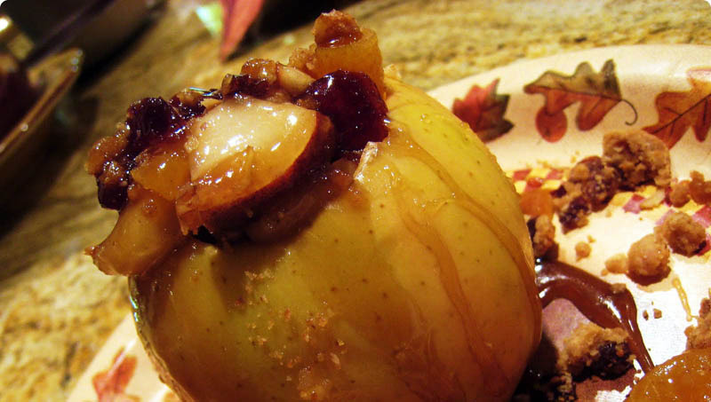 Az almákat alaposan megmossuk, félbevágjuk, és a magházát kivágjuk. Kivajazott tepsibe helyezzük, és a magházak helyét megtöltjük a cukros dióval. Sütőben kb. 8-10 percig sütjük. Porcukorral meghintve, vagy vanília sodóval tálaljuk.