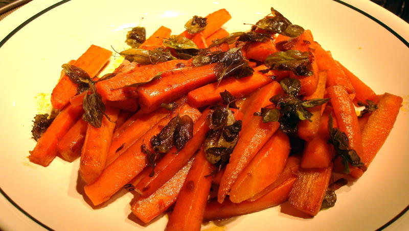 A sárgarépát megtisztítjuk, ferdén 2 centis szeletekre vágjuk, és egy lábasba tesszük. Az olajat meg a borecetet ráöntjük, zúzott fokhagymával, sáfránnyal, gyömbérrel fűszerezzük és fél liter vízzel felengedjük. Közepes lángon 10 percig pároljuk, majd fahéjjal és köménnyel fűszerezzük. A mazsolát belekeverjük, mézzel édesítjük, kissé megsózzuk és további 10 percig pároljuk. Lefedve hagyjuk kihűlni, csak azután tálaljuk.