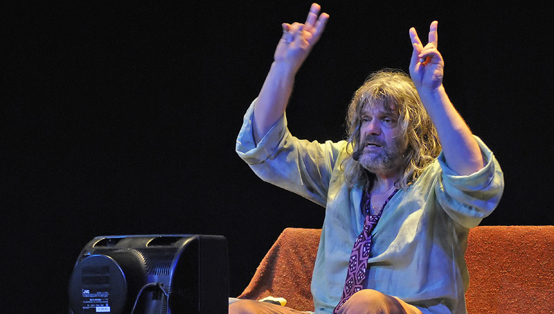 A Vidnyánszki-Földes párostól megszokottan, számos finom hatás színesítette Hobo elmúlt évtizedeinek leghíresebb és leghírhedtebb szövegei által politikai időutazásokkal tarkított, sokatmondó életösszegzését. Egyszer a színpad egyik központi részén lévő tévé időnként felénk fordítva játszotta le Fellini Bohócok című filmjét, máskor pedig Hobo narrálta „némafilmszövegekkel” azt. Azt is szükségtelen túlmagyarázni, amikor a számtalan papírra vetett soraival tömte tele kabátja minden részét…