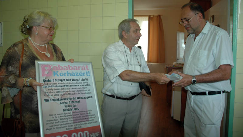 Korábban Simon István, Doboz polgármestere magánszemélykén félmillió forintot ajánlott fel a kezdeményezés támogatására. Gerhard Stengel, Mikus Éva és Balogh Lajos a kórteremek ünnepélyes átadásra szervezett ünnepségen 200 ezer forintot adományozott a kórháznak. Egy ismert békéscsabai vállalkozótól – akinek felesége az osztályon szült, és maximálisan elégedett volt az ellátással – két színes LCD TV-t kaptak, és még két számítógép is várható tőle.