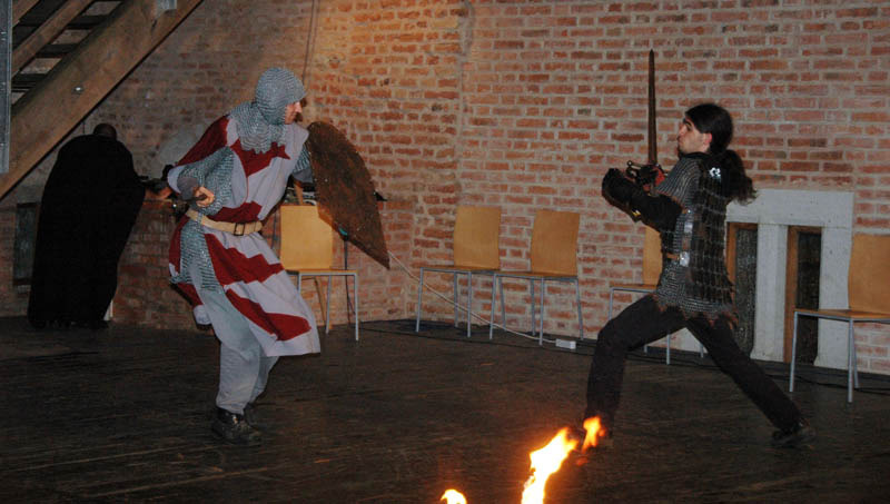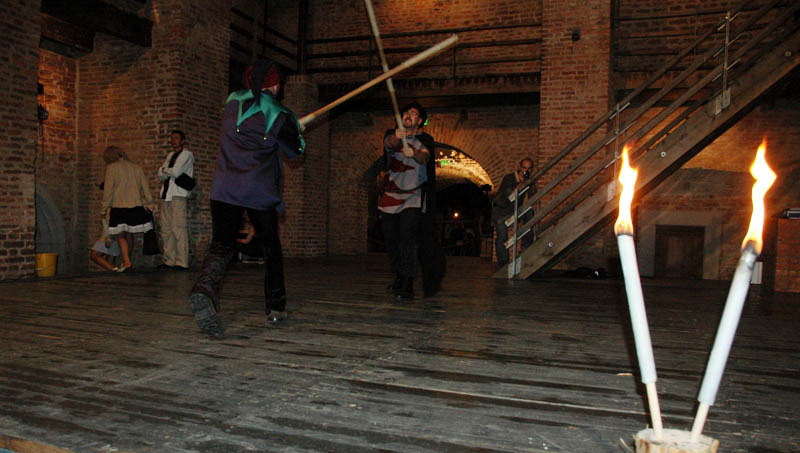 Vihar előtti fülledtség várta a várba készülőket szombaton késő délután, a Múzeumok éjszakájának kezdetén, ahol a nap fényének távozásával egyre több program várta az érdeklődőket. A várt sötétség megadta az alaphangulatot, megrövidítette a látóteret, meggyújtotta az árnymozgató, arcvillogtató lángú fáklyákat és gyertyákat, és nem utolsósorban eltakarta a készülődő felhőket.