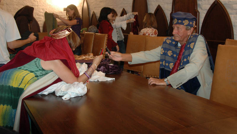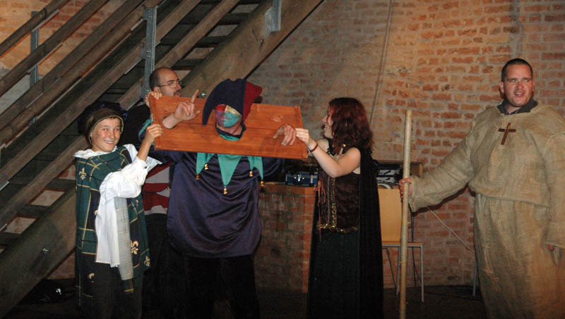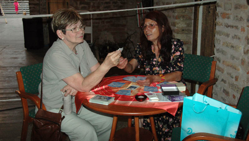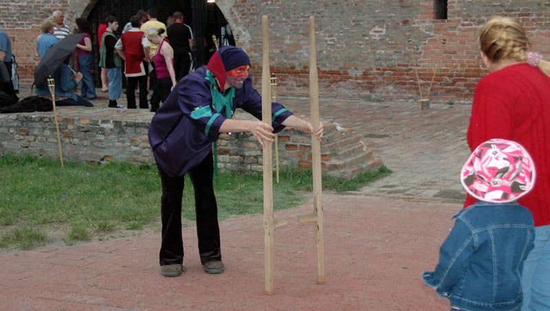 Az udvari bolondnak külön jól jött szerepéhez a csúszós kövezet, amelyen gólyalába rendszeresen elcsúszott, nagy derültséget okozva a gyerekseregnek. A lassan készülő vihar csepergése hamarosan beterelte őt is, meg a népet is a vár védő falai közé. A kapuban mosolygós boszorkány osztogatta a friss szerencsesütiket, amelyek magukban hordozták a jótanácsokat. Nekem ez jutott: „Ha azt kéred, amit szeretnél, abból nem lehet baj”. Gondolom, nem egyedül kívántam akkor az égiek óvását!