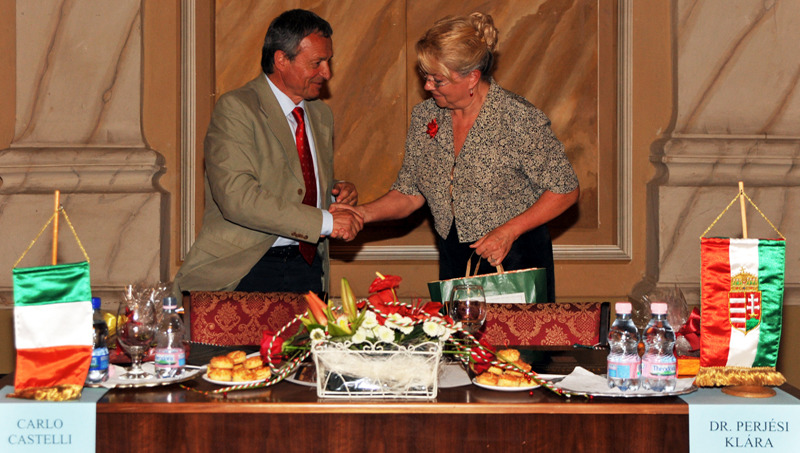 Gyula város dísztermében fogadta a képviselő-testület Budrió testvérvárosunk Carlo Castelli polgármester által vezetett delegációját. Bár a két város delegációi gyakran, évente többször találkoznak, Carlo Castelli hét éve nem látogatott városunkba. Köszöntőjében elismerően szólt a hét év alatt végbement fejlődésről. Hangsúlyozta, Gyula és Budrió 47 éves barátsága példaértékű, amelyet egész Európára ki kellene terjeszteni.