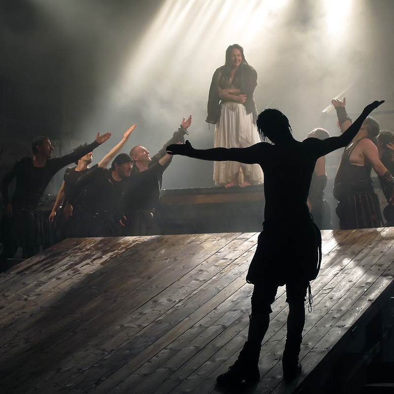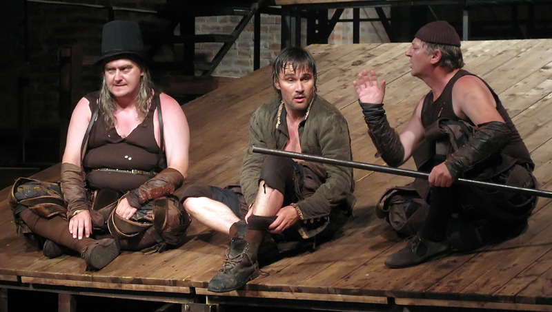 És tényleg nem könnyen követhető történet. A Shakespeare-fesztivál műfaji sokszínűségét, szakmai átgondoltságát, művészi igényességét ostobaság volna vitatni. Nem csupán az odatartozás okán pazar ötlet bekapcsolódni a nemzetközi Shakespeare-fesztiválok rendjébe, de az immáron hatodik életévébe lépett kultúr-kéthét – könnyű kiszámolni – hatodik éve biztosít különleges és átlagon felüli művészeti stabilitást a várszínházi nyárnak. A hátulütője – ha ez egyáltalán hátulütés –, hogy az évről évre Gyulára hozott Shakespeare-előadások között értelemszerűen ritka az elsősorban dikcióra épülő, a vonatkozó darabot a szó legszorosabb értelmében „előadó” játék. A színházba esetleg keveset járó, és a szünetre a hosszacska első részt követően rácsodálkozó, mert a darab végét vélő polgár számára megterhelő lehet, ha „rendes” Shakespeare, „érthető” előadás helyett valójában izgalmas Shakespeare-olvasatokkal kénytelen szembesülni. A társalgási stíl Ariadné-fonalába kapaszkodva: minek nézzem meg a Makrancos Katát, ha már egyszer láttam. A várszínházi Shakespeare-etapok és a Gedeon József direktor hangoztatta műveltség- és ízlésterjesztési szándék, az értő színházlátogatóvá nevelés elképzelése innen nézve válik igazán fontossá.