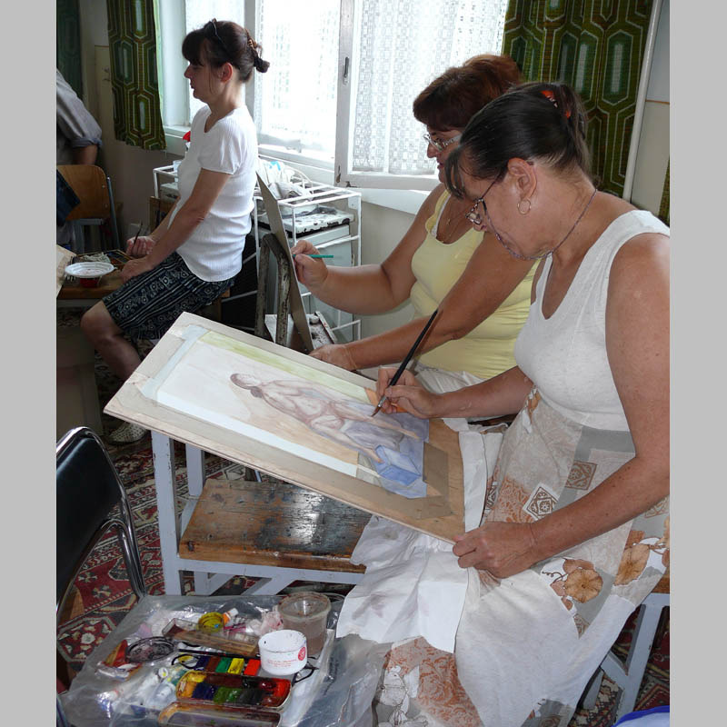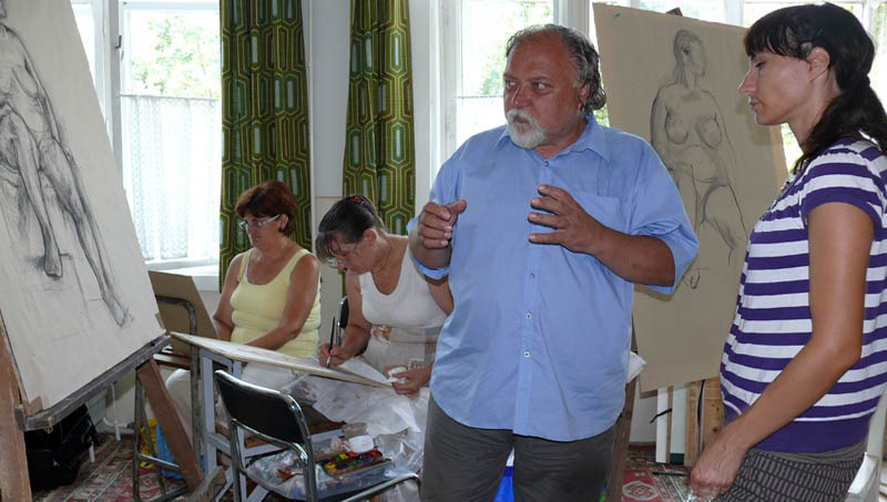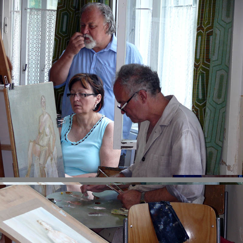 – Gyulán találkoztunk azokkal az emberekkel, akik később modelljeink lettek. Néhányhoz eleinte csak látogatóként jutottunk be, majd később állandó látogatóvá váltunk. Volt egy-két olyan ismerős, akiknél letelepedtünk, évekig nála tartottuk a festőholmijainkat, és majdhogynem műteremként használtuk a házaikat. Egyedülálló idős emberek voltak ők, akiknek ez nem volt ellenükre, sőt kifejezetten élvezték a modellszerepet. Ezáltal az ő életüket, a nehézkes, szegény, egyedülálló öregemberek életét tudtuk ecsetvégre venni, úgy, hogy a gyulai vagy az általános vidéki emberek életének, a magára maradottságának az ábrázolásából festészetet hoztunk ki. Az elkészült alkotásokból július 30-án, este hat órakor vázlatkiállítás nyílik a művelődési házban.