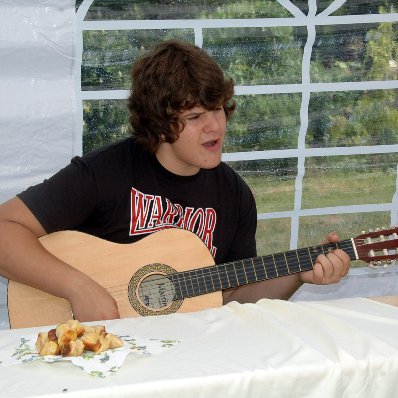 Ezt követően a rendezők unokája, Csordás Ákos adott egy kis ének-gitár koncertet. A 18 éves fiatalember egy idei népszerű tv-s tehetségkutató versenyen 7000 nevezőből bejutott a legjobb ötvenbe, ami nem kis teljesítmény, pláne hogy autodidaktaként énekel. Érdekes volt hallgatni, ahogy a végzős gimnazista erőteljes és szenvedélyes hangjával a Pink Floyd Wish you were here-jét adta elő, miközben a sok autó között hűsölő gyöngyöstyúkok kapirgáltak. A tehetséges srácnak még nincs zenekara, de gyanítom, még hallunk felőle.