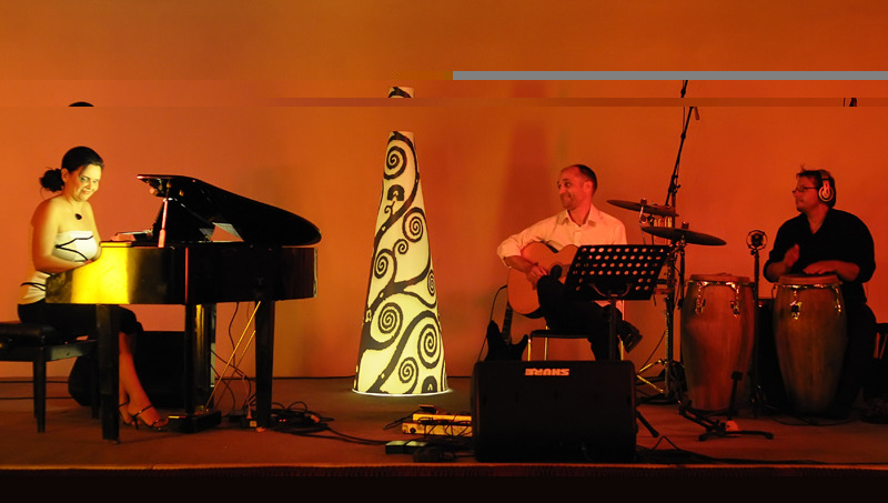 Jó döntésnek bizonyult a rendező Gyulai Kulturális és Rendezvényszervező Nonprofit Kft. elhatározása, miszerint az időjárás fenyegetése miatt az Almásy-kastély parkjából a cselédszárnyba helyezték át a színpadot, melyen Szentpéteri Csilla zongoraművész és zenésztársai léptek fel.