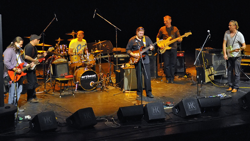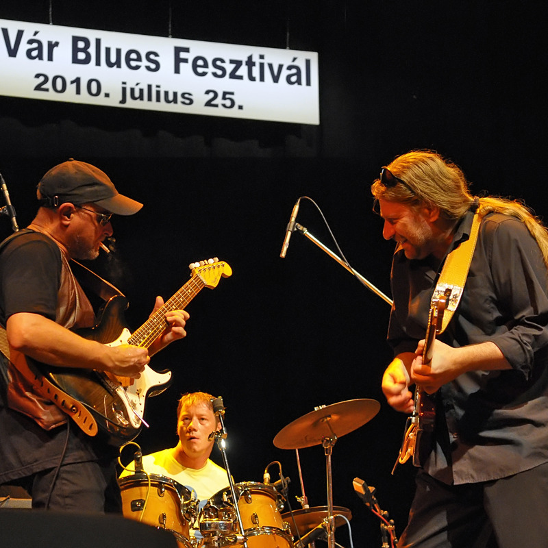Benkő Zsolt, Borsodi László, Mohai Tamás és ifj. Szász Zsolt gitárosok, valamint Pfeff Márton basszusgitáros és a Tímár Tamás dobos tettek róla. A gitárpárbajhősök legtöbbször mosolyogva és előzékenyen adták át egymásnak a taktust, amiben egyéni megszólalásukban és stílusukkal, külön-külön, vagy egyszerre aprították a dobhártyákat, a közönség nagy örömére. A blues-alapokból és saját számaik dallamaiból merített jam-session tartalmazott mindenféle gitártechnikát. Nyújtások, vibrátók, tappingek, slide-technika, dudolós szólók, meg amit még elbírhatott a stílus. Nem igazán ők párbajoztak, hanem a szinusz-hullámok, de azok keményen!