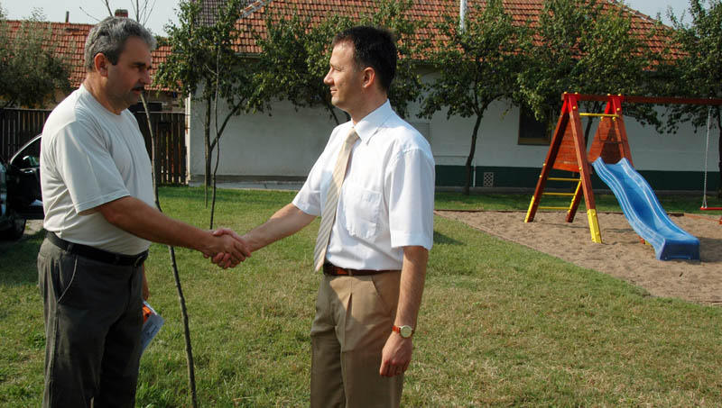 Dr. Görgényi Ernő (jobbról) a játszótér átadásán. Fotó: Gyulai Hírlap Online