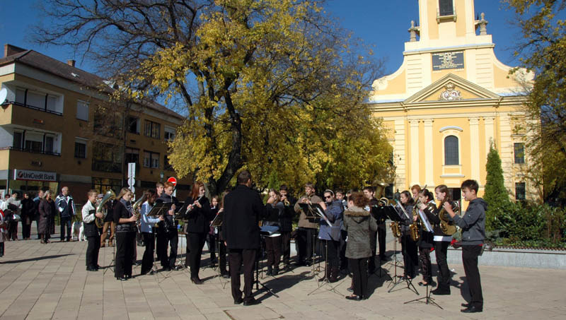 Forradalomhoz illő időjárás fogadta az 1956-os forradalom és szabadságharcra emlékezőket szombaton Gyulán, az Október 23. téren. Őszi napsütés melege enyhítette kissé a hűvös, zászlócsapkodó és sálkövetelő szelet. A téren Gajda Róbert országgyűlési képviselő mondott ünnepi beszédet.