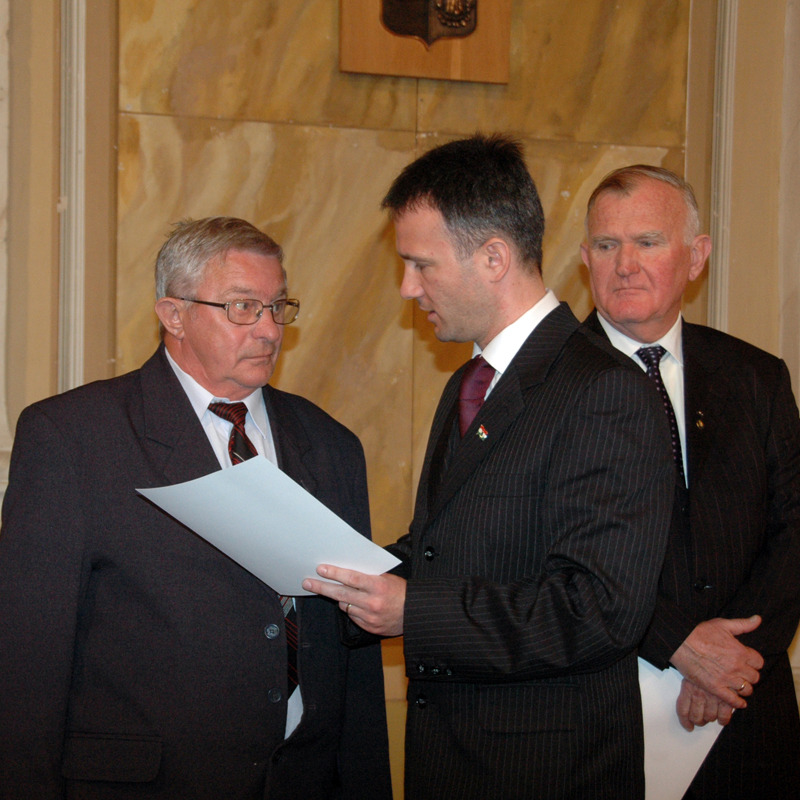 Eredményes, több évtizedes közéleti képviselői munkájáért elismerést kapott dr. Erdmann Gyula és Makovecz István. Érdemeik felsorolása után kitüntetésüket a polgármestertől vették át. Kepenyes Pál klarinétdallamai után dr. Kovács József országgyűlési képviselő és a polgármester az új képviselői táblát avatták fel.