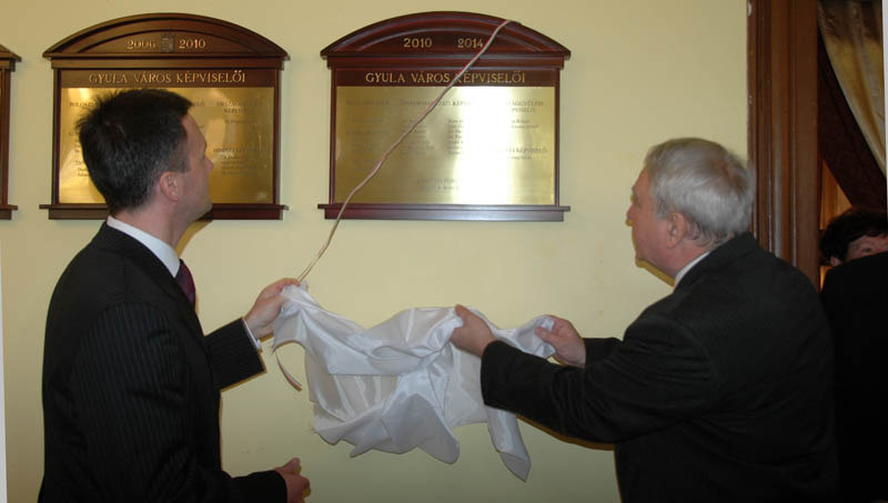 – E megható nap végén szívből gratulálok a képviselőknek, és a város érdekében sok sikert kívánok munkájukhoz. Érdekes és megtisztelő egy olyan táblát lelepleznem – a polgármester úrral együtt, amelyen mindkettőnk neve szerepel – mondta dr. Kovács József.