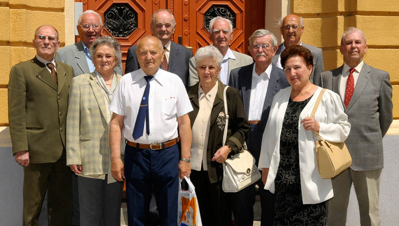 A gyulai Római Katolikus Karácsonyi János Gimnázium 1947-ben érettségizett öreg diákjai 62 éves évfordulójuk alkalmából június 6-án találkoztak. A képen a találkozón résztvevő öregdiákok láthatók: Csatári János, Csomány Lajos, Hack Ferenc, Kohlmann Ferenc, Pántye Péter, Sióréti László, Sriffert József, Szabó Nándor, Tóth Mária.