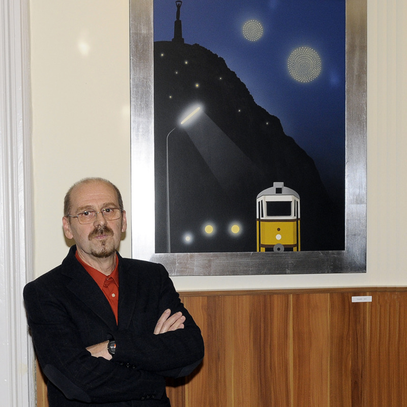 Regős István szentendrei festőművész sokszínű életművéből ad ízelítőt a tárlat, melyben az autók, játékvonatok világa mellett a reformkori épületek, a klasszikus zeneszerzők vagy a különleges fényhatások ereje is felfedezhető, a képeken a mindennapi, olykor banálisnak tűnő motívumokból kiindulva meglepő asszociációk születnek, mutatta be a Munkácsy-díjas művész világát a kiállítást megnyitó beszédében P. Szabó Ernő művészettörténész.