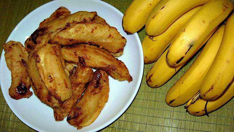 A banánokat hosszában felvágjuk, majd ezeket még 3-4 egyenlő részre, a banán nagyságától függően. A tojást egy kevés cukorral, liszttel és tejjel kikeverjük, melyből egy sűrű, palacsintatésztához hasonló masszát kapunk. Ha kész a massza, akkor a banándarabokat bele mártogatjuk és előre melegített olajban kisütjük. A megsült banánokat tetszés szerint mézzel leönthetjük.