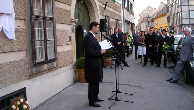 A gyulai Erkel-emlékút résztvevői ott voltak a budai várban, az Úri utca 24. számú háznál is, ahol emléktáblát avattak Erkel tiszteletére. Itt beszédet mondott L. Simon László, az Országgyűlés Kulturális és Sajtóbizottságának elnöke és dr. Nagy Gábor Tamás, a Budavári Önkormányzat polgármestere. Az emléktábla Kampfl József alkotása Erkel egykori lakóházán. A tábla felirata szerint Erkel Ferenc, a Magyar Himnusz zeneszerzője 1851-1860. között lakott a házban. Itt alkotta meg nemzeti operánkat, a Bánk bánt. Dr. Nagy Gábor Tamás polgármester elmondta, az emléktábla figyelmeztet, Erkel Ferenc nap mint nap ennek az utcának a kövét koptatta, itt fogadta szomszédai köszönését. Ablakából a Vérmezőt szemlélte, és itt hallotta megkondulni a budavári nagyboldogasszony templom harangjait is. A szabadságharcot Erkel zenészként, zeneszerzőként, színházi emberként szolgálta. A szabadságharc leverése után Erkel is elnémult egy időre, 1852-ig egy hangot sem vetett papírra. Erkel mélyen gondolkodó, érzékeny, figyelmes ember volt. Egy pillanat egész világot mozdított meg benne. Erkel honszeretete a Széchenyiéhez fogható alázat, ragaszkodása szülőföldjének zenei kincseihez Kölcseyre jellemző. Reformkori szelleme egy műveltségében, kultúrájában magyar állam megteremtését tartotta legszentebb hivatásának – mondta dr. Nagy Gábor Tamás.