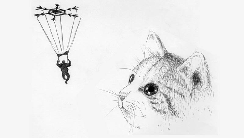 Odaföntről hópelyhek hullnak alá, százezer ejtőernyős. Néha madarak csapódnak közéjük, a szivarfa ágán vörösbegy hintáz. A kerti csap rongyokba bugyolált koldus, tövében cinkék, verebek egymáson. Csőrükkel a havat légkalapácsozzák. Jár az a sok kis fej.
