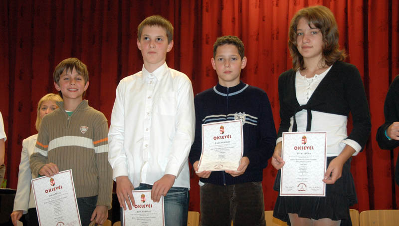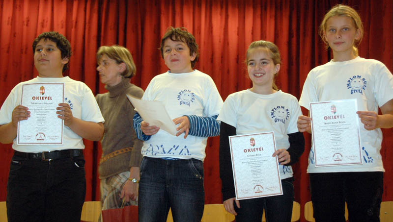 Városunk tanulóinak eredményei: a legkisebbek között remekeltek a Bolondgombák, az Implom harmadikosai; 1. helyen végeztek, és az országos döntőbe jutottak: Nicoara Eszter, Szép-Gergely Zsófia, Szombati Jázmin, Vincze Zoltán. Tanítóik: Medvéné Varga Zsuzsanna, Szabóné Földesi Erika. 5. helyen végzett az 5. iskolából a Számászok csapata: Berki Tünde, Ottlakán Áron, Pető Péter, Szappanos Réka. Felkészítőjük: Fábián Istvánné. A 4. osztályosok 6 díjazott csapatából az 1-4.-et az Implom iskola diákjai szerezték meg. A kis Einsteinek 1. helyezettként országos döntősök: Balogh Bence, Geszner Zétény, Szilágyi Hanna, Uhrin Ubul. Felkészítőjük: Szabóné Földesi Erika. A 2. helyen végzett Töprengőket – Bombitz Bálint, Nemesi Krisztián, Nagy Levente, Tar Attila – Szabóné Földesi Erika és Domokos Zoltánné készítette fel. Szabóné Földesi Erika harmadik csapata, a Matek ördögök 3. helyezettek lettek: Bozó Anna, Gyepes Rita, Mohamed Shaadi, Molnár István. A Mat-manók nevet viselő implomos negyedikesek negyedikek lettek: Csontos Liliana, Boruzs Barbara, Nagy Bernadett, Sztanoj Dóra. Felkészítők: Szabóné Földesi Erika és Domokos Zoltánné. Az ötödikes Bay iskolás Számvetők: Bencze Gréta Alexandra, Bodorló Balázs, Irházi László, Jenei Zoltán is országos döntőbe jutottak, mivel a körzeti versenyen 1. helyen végeztek – tanáruk Ludányiné Perényi Márta. A Végtelen 4-es nevű 5. osztályosok az Implomból az 5. helyen végeztek: Cséplő Gergő, Faragó Kitti, Kolozsi István, Szűcs Máté. Tanáruk: Forgácsné Faragó Katalin.