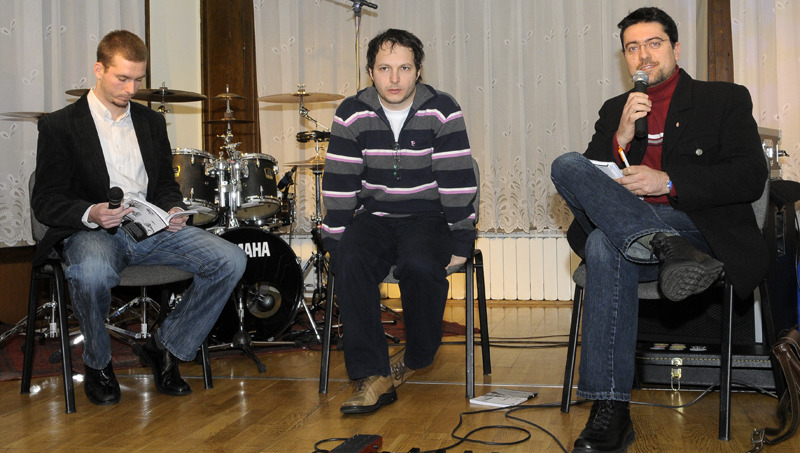 Belépünk a Cserepesházba. Kiss Jani, a Cserepesház (Zuglói Művelődési Ház) házigazdája (tagintézmény-vezető) fogad minket. A tömeg, mint közönség, jelenléte biztató. Forgatókönyvet kapunk kezünkbe. Innen szigorú rendben zajlik minden. Percre pontos és beosztás. A színpadon a gyulai Percek kérdése zenekar (Szabó Ferenc ének és basszusgitár, Rusznyák Csaba dobok, Oláh Szabolcs gitár és vokál) hangol. A protokoll elsodorja tőlem Lacit és Ernőt. Én beülök a leendő közönség közé. Tőlem jobbra egy idős néni panaszai színezik meg a dobos-gitáros hangolás magasságait és mélységeit. Hallgatom, majd nyugtatom, hogy nem lesz végig ilyen ricsajos az este.