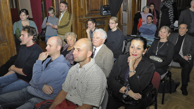 Városunk nemrégiben megválasztott polgármestere is köszönti a pesti gyulaiakat. Görgényi Ernő a varázslatos gyulaiságról beszél. Én közben a jegyzeteimet egészítgetem ki, hiszen mindjárt mi jövünk az egyetemista Máté Istvánnal (Isti), kettőnknek kell faggatni Kiss Lacit az új könyvéről.