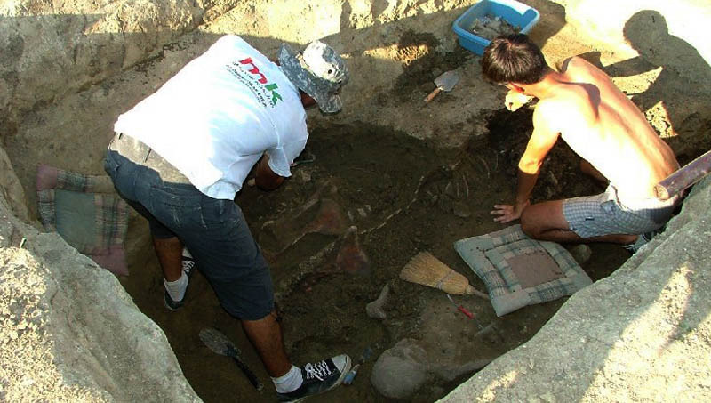– Az első lelőhelyen feltártuk a szarmata, illetve szkíta kori településnyomokat – folytatta Liska András –, félig földbe ásott, mélyített házakat, hulladékgödröket, kemencét; és egy széles vízelvezető árok nyomait is megtaláltuk. Ugyanakkor egy szkíta kori idős hölgynek a sírját is feltártuk ezen a területrészen. A másik, a paradicsomi lakótelephez közelebb eső lelőhelyen egy összesen 72 sírból álló temetőrészletet tártunk fel, melynek három oldalát sikerült lehatárolni. A temető északi részén a telekhatár a kutatásoknak is határt szabott, ezért nem tudjuk pontosan, hol ér véget, illetve ezen a területrészen feltételezhető még néhány sírhely.