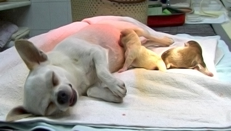 A tévés forgatás ideje alatt éppen egy csivava kutya császározásán dolgozott a csapat. Ennél a fajtánál nem ritka, hogy ilyen beavatkozás szükséges a fialásnál. Mint a képeken látható, most két kiskutya látta meg szerencsésen a napvilágot.