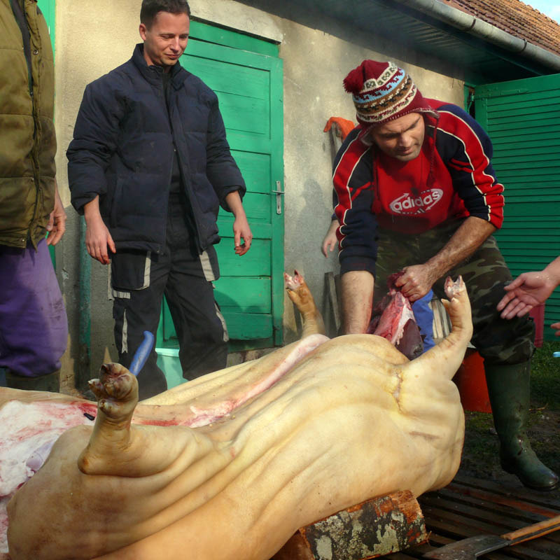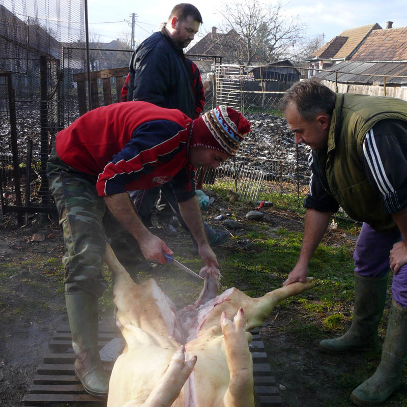 Rendhagyó, de annál praktikusabb ajándékkal érkeztek gyulai és Gyula környéki civilek a Holtmarosi Tulipán Gyermekotthonba, hol 12 magyar árva gyermeket nevelnek Bartha József református lelkész irányításával. Rendhagyó, hiszen az adománycsomagok általában ruhát, szárazélelmiszert, könyveket, édességet, esetleg készpénzt tartalmaznak, de most, a felsorolt adományok átadása mellett karácsonyi ajándék gyanánt avatott kezek két, helyben vásárolt disznót vágtak le és dolgoztak fel az árvaháznak.