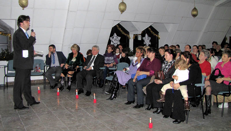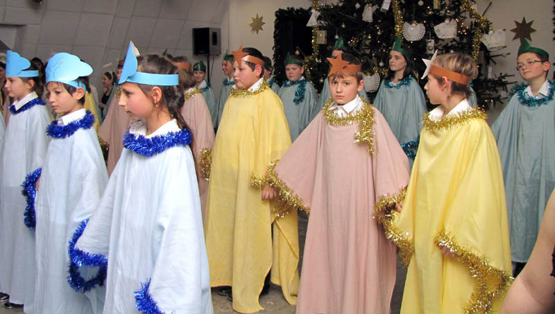 A Gazdasági és Műszaki osztály munkatársai által szervezett ünnepséget az ezerhatszáz esztendeje folyton barangoló, mégis lelkes, nagyobbacska pocakkal, de annál hatalmasabb humorral bíró Mikulás vezényelte. Az ünnepi műsor nyitányaként Perlaki Attila vezetésével az Erkel Ferenc Kamarakórus örvendeztette meg csodaszép karácsonyi dalokkal a hallgatóságot. A GYAKI Dürer Albert általános Iskola Tagintézményének 4. osztályos tanulói különleges, verseket, dalokat, táncot, zenét ötvöző műsora azzá vált az ünneplő közönség számára, aminek megalkotói szánták: igazi angyalfiává. Az ünnepi köntöst öltő szót, a citeramuzsikát, a Hóangyalok keringőjét, a fák és csillagok táncát, énekét, mint becses ajándékot hozták el az ünnepre a gyermekek, felkészítőjük Kiss Józsefné volt.