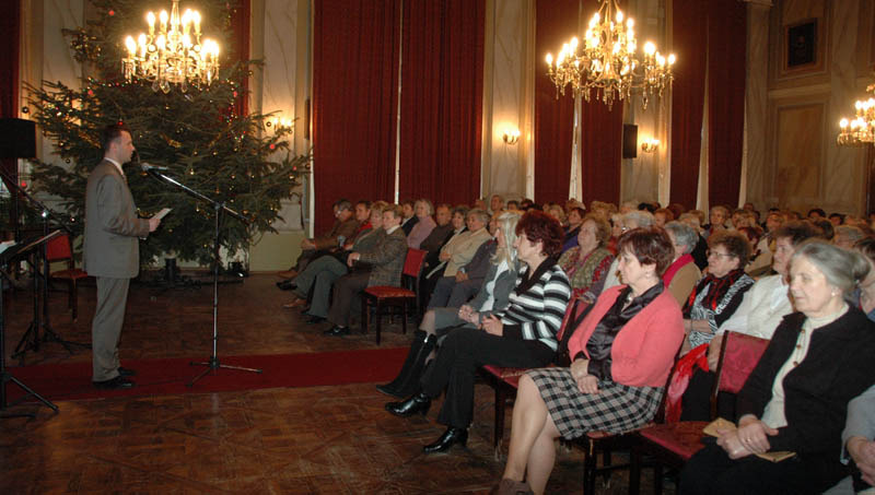 Gyula Város Önkormányzata karácsonyi ünnepséggel köszöntötte az oktatás, a szociális és az egészségügyi terület, valamint a polgármesteri hivatal nyugdíjasait a városháza dísztermében. A hatalmas karácsonyfával díszített teremben dr. Görgényi Ernő polgármester üdvözölte a nyugalmazott dolgozókat.