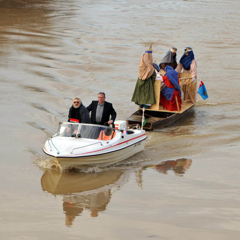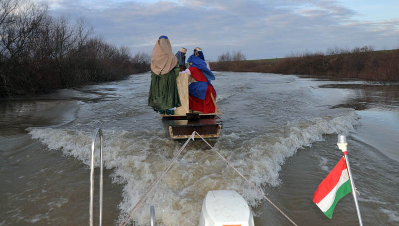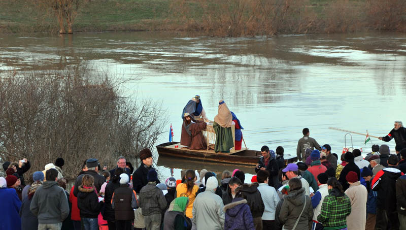 Megérkezett Gyuláról Nagyzerindre az úszó betlehem. (Részletek a program korábbi sajtótájékoztatójáról itt olvashatók.)