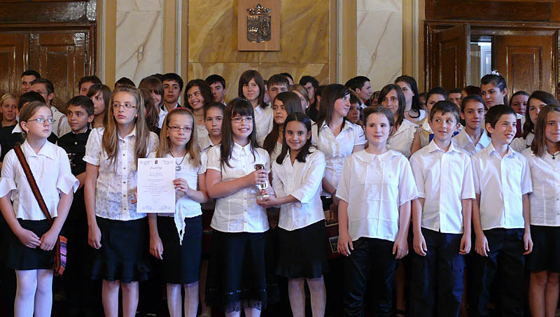 A Kiváló Diák címet kiérdemlő iskolásokat (képünkön a kiváló diákok egy része látható) dr. Perjési Klára polgármester köszöntötte a városháza dísztermében. Tanulmányi versenyeken elért kimagasló eredményük elismeréseként a következő 83 diák kapott oklevelet és könyvjutalmat.