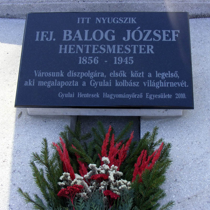 155 esztendeje, 1856. január 1-jén született ifj. Balogh József, aki a gyulai kolbásznak elsőként szerzett nemzetközi hírnevet. 1910-ben a Brüsszeli Világkiállításról aranyéremmel és díszoklevéllel kitüntetve érkezett haza. Az elmúlt esztendőben posztumusz „Gyula Város Díszpolgára” címet kapta meg. Védett sírhelyét a Szentháromság temetőben, a Gyulai Hentesek Hagyományőrző Egyesülete és a Gyulai Városbarátok Köre újította fel, és emléktáblával látta el. A táblán a következő sorok olvashatók: „Városunk díszpolgára elsők közt a legelső, aki megalapozta a Gyulai Kolbász világhírnevét.”