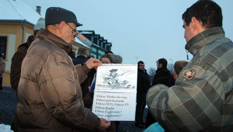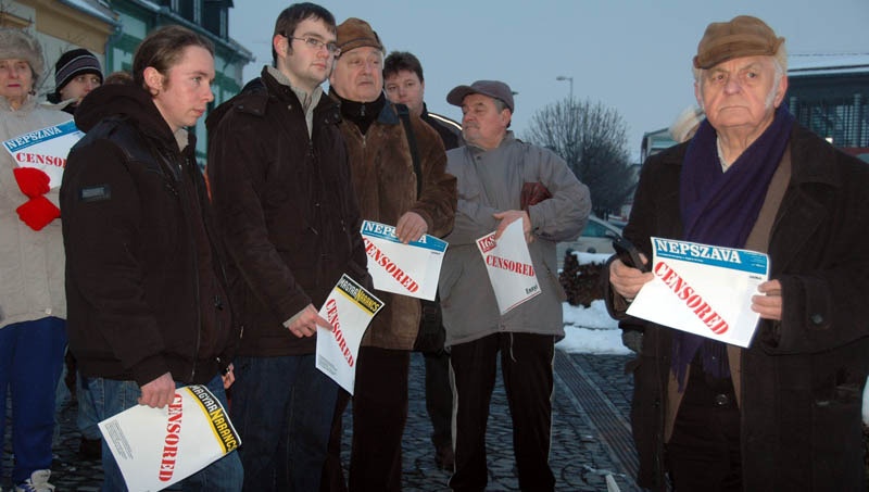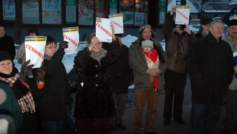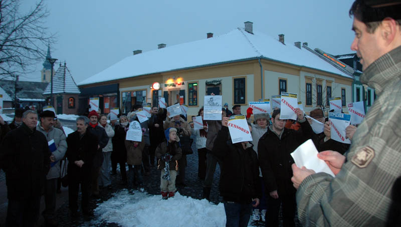 A mai napon öt városban tartottak demonstrációt a szabad véleménynyilvánításért és sajtóért, Budapesten, Pécsett, Debrecenben, Szegeden és Gyulán. Tavaly december 23-án már volt egy hasonló megmozdulás a Petőfi téren. Ezúttal a helyszínen mintegy ötvenen jelentek meg a Kossuth téren, és CENSORED feliratú üres újság címlapokkal tüntettek az új médiatörvény ellen. Az egybegyűlteket Bod Tamás köszöntötte, majd rövid szónoklata után gyertyát gyújtottak.