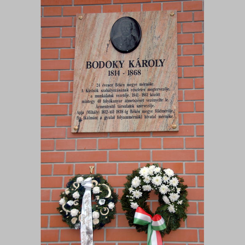 Bodoki reprezentatív, hiteles arcképével díszített táblája az OTP épületének az Élővíz-csatornára néző falára került, nagyon jól megválasztott helyre, hiszen itt az általa szabályozott Fehér-Körös partján állunk, nem messze az édesapja által tervezett Kapushídtól. A bank épülete is eszünkbe juttathatja, hogy a neves mérnök a Békés Megyei Takarékpénztár Egyesület alapítója és igazgatója volt. Az avatóbeszéd Bak Sándortól, a Körös-vidéki Környezetvédelmi és Vízügyi Igazgatóság igazgatójától hangzott el. Megemlékezett arról, hogy a Kovászna megyei Bodok községből származó, eredetileg a Henter nevet viselő család leszármazottai értelmiségi foglalkozású, nagy humán műveltségű, irodalomkedvelő, könyvgyűjtő, matematikát, kémiát, nyelveket szerető polgárok voltak, akik a munkájukban, a közéleti szerepvállalásban, műveltségükben és emberségükben egyaránt kiemelkedtek. A Gyulán született Bodoki Károly is művelt, jól képzett, külföldet járt mérnök volt, aki elévülhetetlen érdemeket szerzett a Körösök és a Berettyó szabályozási terveinek elkészítésével és a kivitelezési munkák irányításával. Bak Sándor emelkedett hangú beszédében szakmai és közéleti tevékenységük, emberi értékeik alapján a ma élő gyulaiaknak példaképül ajánlotta a Bodoki család tagjait.