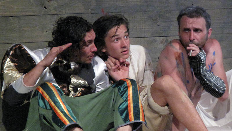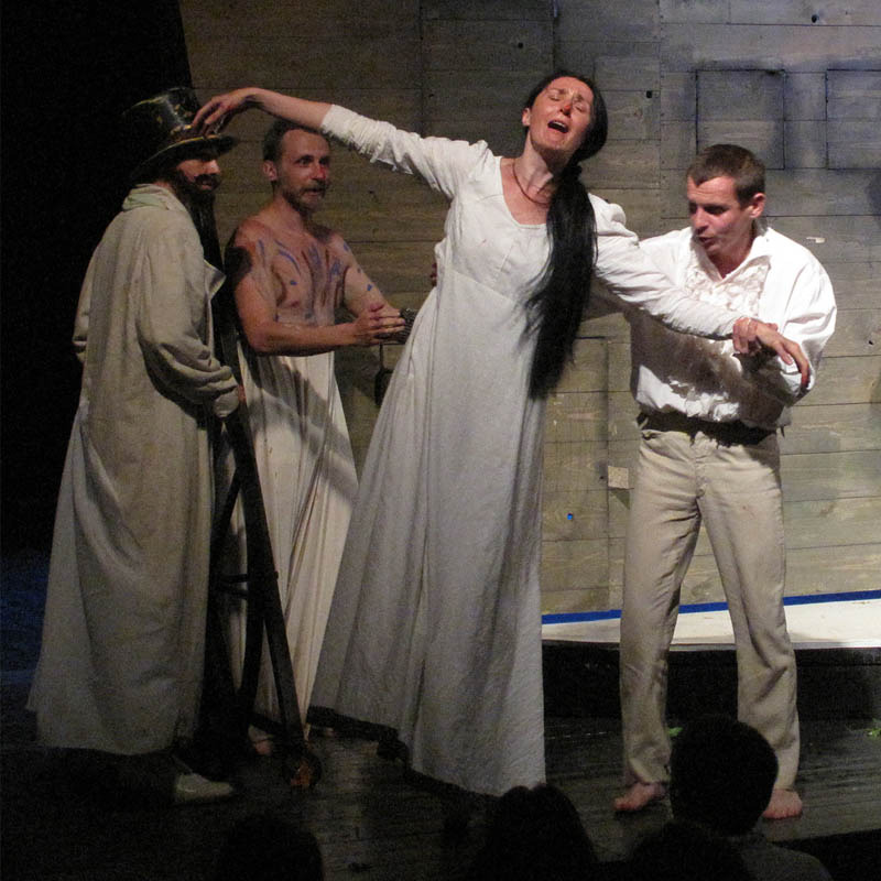 Megjegyzendő, a darab utolsó órájában jelentkező vihargyanús kósza szellő, hozzá néhány vadul pogózó galamb megkísérelt beleköpni a teljes műértelmezői átélés levesébe –esélytelenül. Ellenben a valahonnan a közelből felhangzó, nosztalgikus felhangoktól (Demjén, Zorán) sem mentes élőzene durván és gusztustalanul megkeserítette az élményt. A Vidnyánszky-rendezésekben mindig ott az improvizáció lehetősége, a váratlan történések kiaknázása a játszott darab javára, a külvilág rezdüléseinek beépítése a szöveg és a mozgás lazán fegyelmezett világába – ez a muzsika azonban súlyos nyomott hagyott, és láthatóan a színészeket is zavarta, aminek legbiztosabb jele az volt, hogy nem tudtak érdemben reagálni rá. Ahogy magunk sem tudtuk egy idő után, a basszusgitár mackós dörmögése a darab zenei struktúrájának része-e, avagy megint a falakon túli hamis világ járatja velünk a bolondunkat. Zalán Tibor írja valahol (a rend kedvéért: tudjuk, hol, de nem lehet mindig a Bárkára hivatkozni), hogy az ember olyankor nagyon keserűt érez az ínyén. Ilyesmire gondolt vajon?