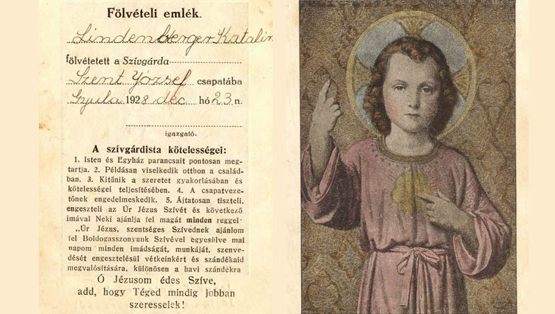 1928. december 28-án Lindenberger Katalin felvételt nyert Gyulán a Szívgárda Szent József csapatába. Az ez alkalomból kapott emlékkép elülső oldalán Jézus Szentséges Szívének képe látható, a hátulsó oldalon a szívgárdisták kötelességei olvashatók. Ezzel tagja lett az első világháború után létrehozott egyik nagy létszámú katolikus szervezetnek. (A kép a cikk illusztrációjaként látható.)