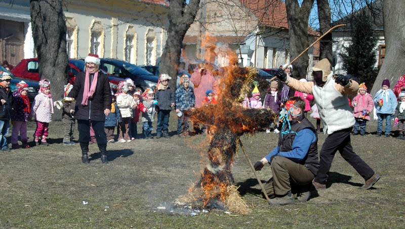 Nemrégen még nagy pelyhekben szakadt a hó, most meg kapkodva menekül a földbe a nap melege elől. Nem is csoda, hiszen nyakunkon a tavasz. Gyönyörű napos időben indultak a németvárosi óvodások saját készítésű maszkjaikban, csattogva, zajongva, énekelve az Apor térre, temetni a telet. Szalmából készült kiszebábjukban ott volt a sok cetlicske, amire mindenki ráírhatta – vagy még az írás tudásának híján – rárajzolhatta búját, bánatát. A szalmabábu az ovisok gyűrűjében hamar lángra kapott, majd megjelent egy maszka is, hogy segítsen az éneklő, pöttöm téltemetőknek. Pattogott a tűz, füstölt a tél.