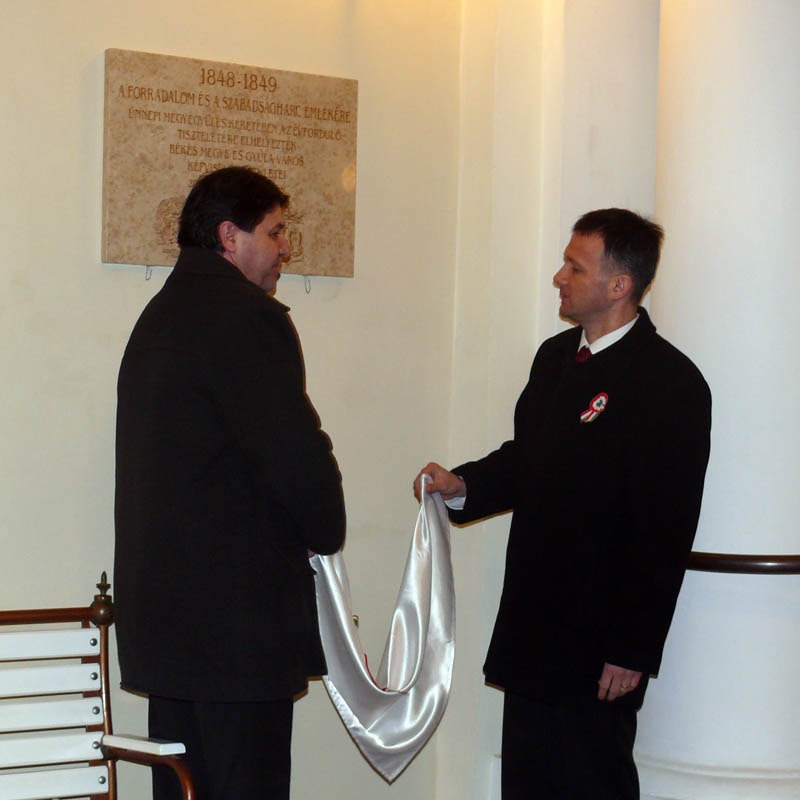A Petőfi szobor megkoszorúzásával kezdődött ma 9 órakor Gyulán az Ünnepi Megyei Közgyűlés, majd a városháza épületében emléktábla avatással folytatódott. A polgármesteri hivatal udvarán emlékfát ültettek a Békés Megye Képviselő-testülete és Gyula Város Képviselő-testülete képviselői. 11 órakor ünnepi ülés kezdődött, melyen dr. Görgényi Ernő polgármester és dr. Kovács Jószef országgyűlési képviselő köszöntötte a vendégeket és emlékezett meg az 1848-49-es forradalom és szabadságharc eseményeiről. Kihelyezet megyegyűlés utoljára 1991-ben volt Gyulán.