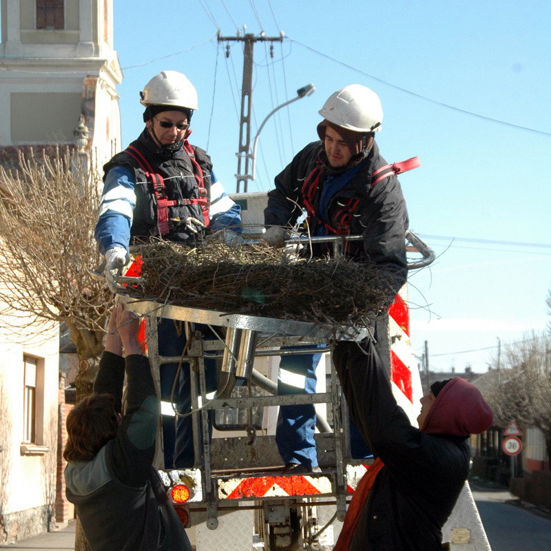 – A gólya alapvetően olyan helyet keres, ahol stabilan le tudja pakolni a fészkét, minél magasabban, annál jobb. Ilyen például a villanyoszlopok teteje. Ez az áramszolgáltatást zavarhatja, illetve a madarakra is veszélyes lehet. Ezért a fészek magasítása mindenkinek hasznos, mert így a gólyamadár is biztonságosan költhet, és üzemzavart sem fog okozni az áramszolgáltató hálózatában – okolta az eseményeket Forgách Balázs, a Körös–Maros Nemzeti Park tájegységvezetője.