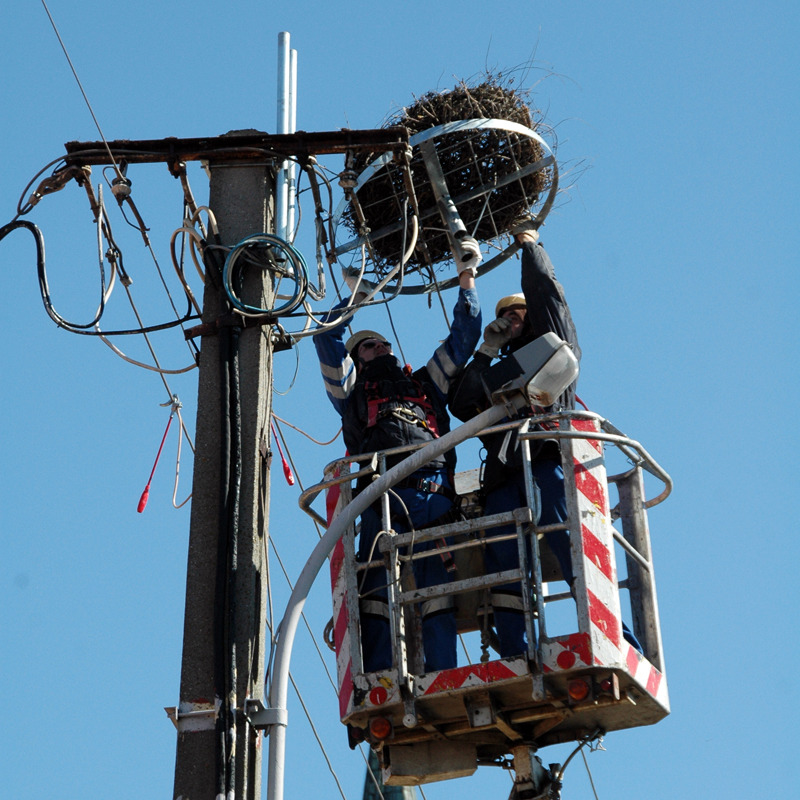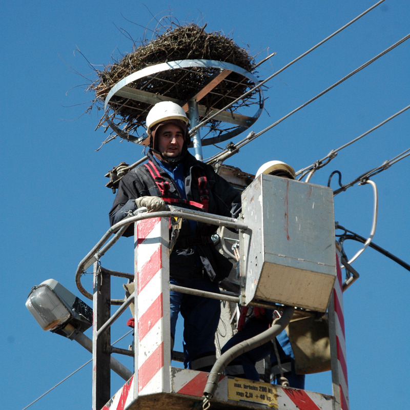 A magasítás során a villanyoszlop tetejéről a régi fészket eltávolítják, majd egy masszív, fém fészektartó állványt szerelnek fel egy új fészekkel, amire fokozottan védett madaraink rendre vissza is térnek.