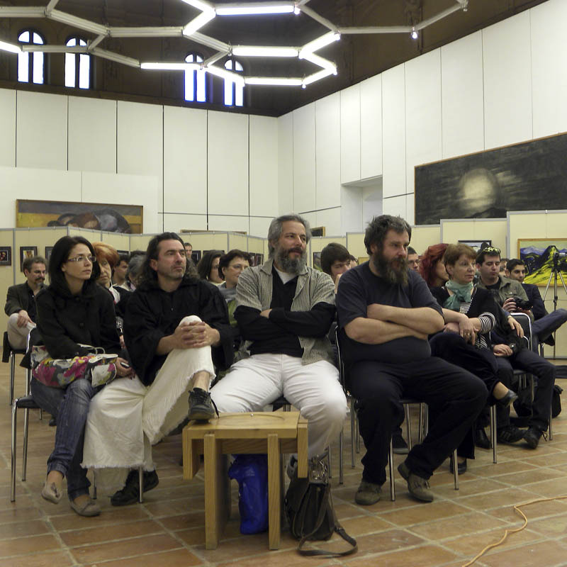 A Gyulai Tavaszi Fesztivál keretében szervezte meg a Corvin János Múzeum az I. Gyulai Kortárs Művészeti Találkozót, a rendezvénynek tegnap délután a Kohán Képtár adott otthont. Az összművészeti eseményen a Székely Aladár Fotóklub tagjainak képei mellett megtalálták helyüket a paravánokon a Gyulai Alkotókör három képviselőjének, B. Jász Jolánnak, Fábián Irénnek és Kukár Istvánnak alkotásai. Mindezt az a Kohán-miliő övezte, mely az egyedi hangzásvilágban megfogalmazott igényes rockzenét játszó Percek kérdése zenekar számára vizuális akusztikát biztosított, a 3T Csoportnak pedig ihletet s hátteret adott legújabb performance-uk megszületéséhez. A Kukár István, Novák Attila, Szuhaj György alkotta művészhármas ezúttal otthont teremtett a művészetnek, legalábbis a találkozón bemutatott performance egyik lehetséges értelmezése szerint. Kiss László író, aki a kortárs magyar prózának nemcsak vidékünkön jól ismert alakja, a Fénykép című novellájából olvasott föl egy részletet a disznótoros napok sokarcú világába kalauzolva hallgatóságát.