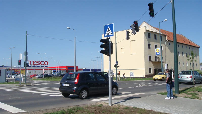 A gyulai Tesco megnyitása után megnőtt a forgalom a Csabai út áruház előtti szakaszán, az úttesten átkelő gyalogosok számára pedig – akiknek a száma szintén növekedett – veszélyessé vált az úttesten való átkelés. Hiába korlátozták a sebességet, decemberben és januárban is két-két baleset történt. Ezek olyan riasztó események voltak, amelyek azonnali intézkedést követeltek. A város, a Tesco és a közlekedési szakemberek gyors ütemben kidolgoztak egy megoldást. Nagyon örülünk annak, hogy sikerült ezt a csomópontot kiépíteni és jelzőlámpákkal felszerelni, továbbá bízunk abban, hogy ezután nem fog itt közlekedési baleset történni – mondta el Galbács Mihály önkormányzati képviselő a jelzőlámpás közlekedési csomópont átadásakor.