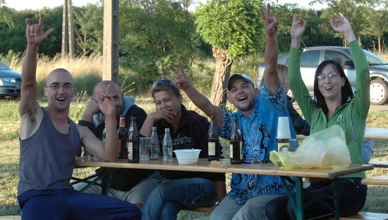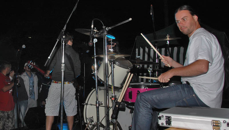 A gyulai hentes hagyományőrzők finom pörköltet főztek a jelenlévőknek, akik a jóízű falatozás közben tovább hallgathatták a dallamos rockzenét játszó The Paradise Zone fiatal tagjainak muzsikáját. Alkonyodott már, amikor az egyszer pszichedelikus, máskor nyers Percek Kérdése zenekar állította színpadra műfaji megkötések nélküli underground rockzenei repertoárját. A füstbe burkolózó deszkákon a fiatalos lendületű, több tehetségkutatón is eredményes Snail GandN (magyarul: Csigakert) vette át a stafétát, hogy sugárhajtású motort lealázó expresszív dübörgésüket hallassák. Egy kis beállást követően a Blades trió verziója ontotta a rockbulit, és még jobban lendületbe hozta a nagyérdeműt. Ezután a MonaStereo zenekar fele, Petróczki Gábor ütőshangszeressel kiegészülve, Malenkij Robot névvel mutatta be elektronikus groove-okra épülő, ám de ősi erőket is bemutató számaikat a jelenlévőknek és a csillagos boltozaton figyelő negyed holdnak. Végezetül a vendég, a komádi Next Day csapott a húrok közé, illetve a bőrökre. A maratoni koncertsorozat alatt a szomszédban házőrző gúnár mindvégig a kerítés mellett tapodott, de a deszkás punkok nem hagyták pihenni, majdhogynem saját és a közönség végkimerüléséig, hajnal négyig tolták kétórás műsorukat.
