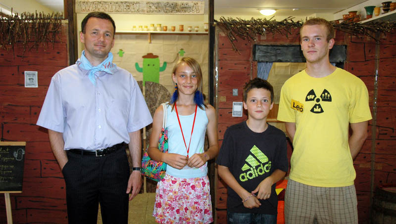 A GYAKI 5-ös Számú Általános Iskolában már múlt hét óta tart a játékváros elnevezésű programsorozat. Dr. Görgényi Ernő, Gyula város polgármestere ma tett látogatást a kéthetes táborban. A vadnyugat pora ellen kendőt kötve lépett be a western kocsmába, ahol limonádéval enyhítette a hőséget.
