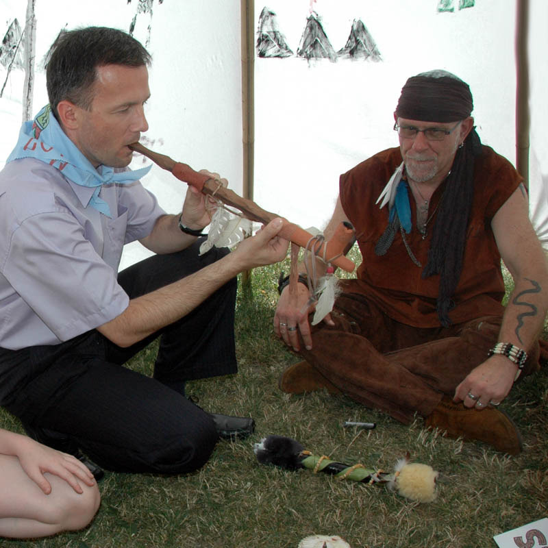 Igazi csúcstalálkozót láthatott, aki arra járt, ugyanis a játékváros polgármestere és Gyula város diákpolgármestere is jelen volt az eseményen. Gyula város vezetője körbejárt a táborban és megszemlélte min dolgoznak a gyerekek, majd egy sátorban Roger Königgel, a játékváros indián harci főnökével – a diczingeni játékváros alapítójával – elszívta a pipát. Miután békés szándékáról tanúbizonyságot tett, ajándékba díszes csontból készült dobütőt kapott.