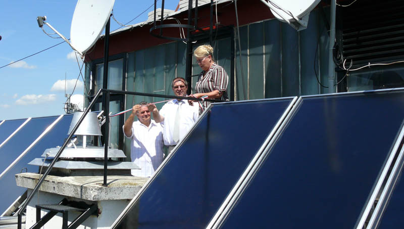 Az újonnan átadott napkollektoros rendszernek köszönhetően 1040 forint helyett 216 forintba kerül 1 köbméter hálózati meleg víz előállítása a Budapest körút 51. szám alatti tömblakásban lakó hatvan családnak. A kivitelezési munkálatok, illetve a kéthetes próbaüzem végeztével a 10 emeletes lakótömb tetején ünnepélyes keretek között adta át a kivitelező Demkó Gázszerviz képviselője a XXI. századi rendszert.